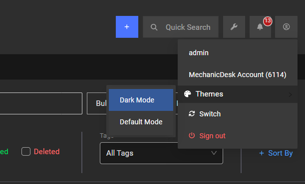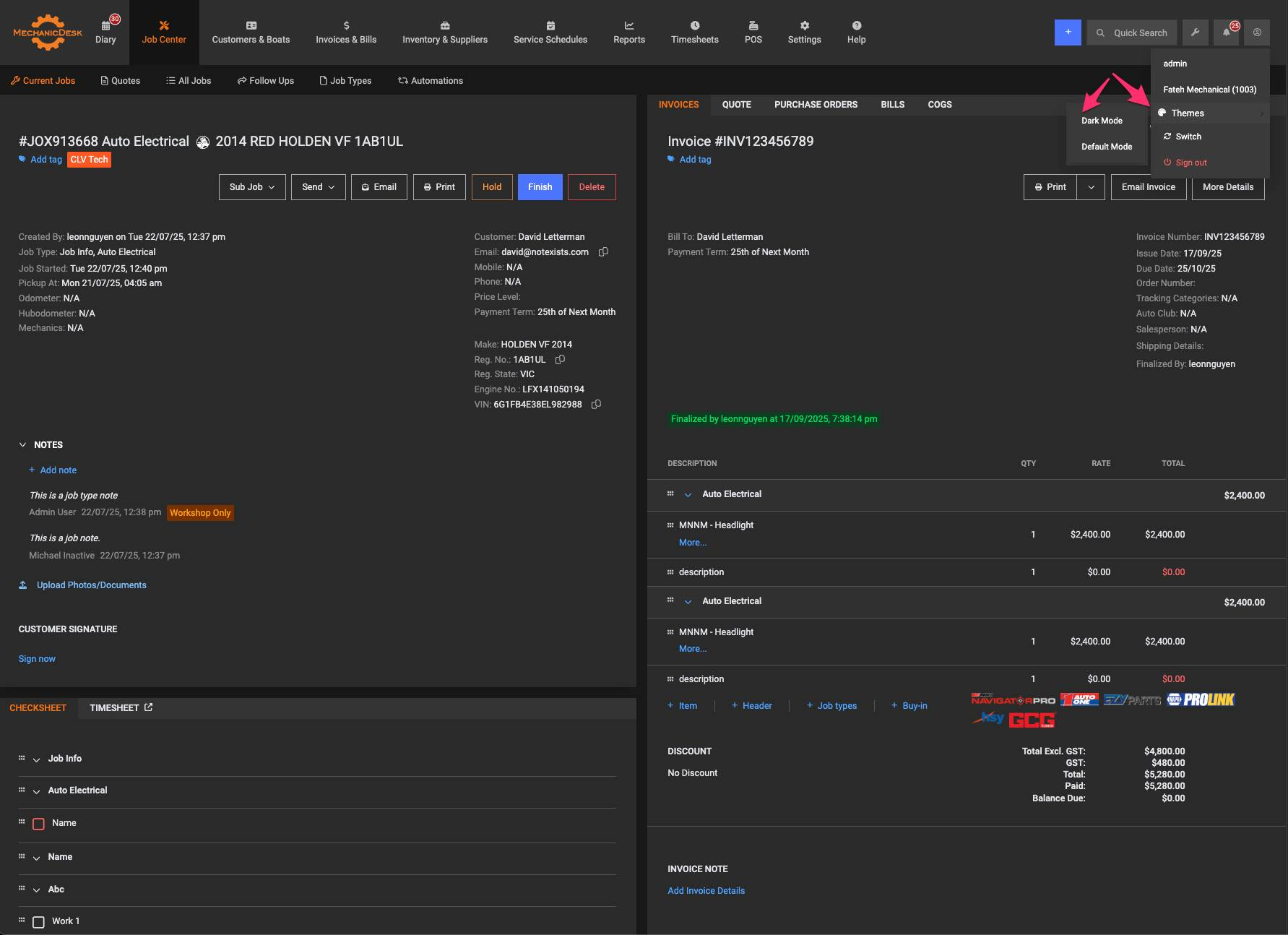Our first major feature update is the Dark Theme. This changes the entire look of MechanicDesk to a dark mode, similar to the themes available in most modern web browsers.